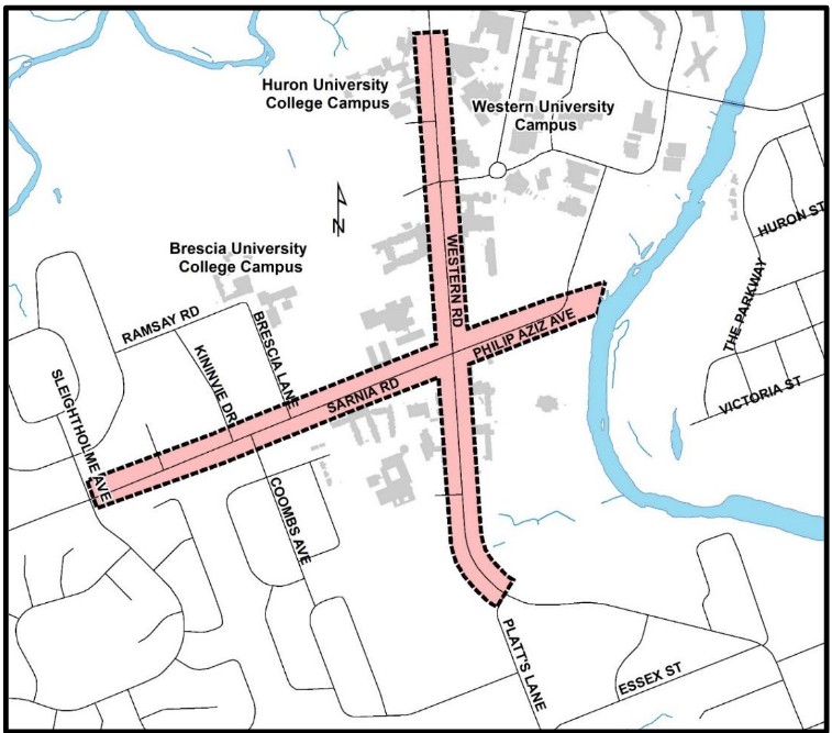 Construction of Philip Aziz Avenue and Western Road is planned to begin in Spring 2026. The construction of the roadworks is anticipated to require one construction season, with some planned carry-over and finishing work in 2027. Finalization of the construction staging plan will include coordination with Western University administration.