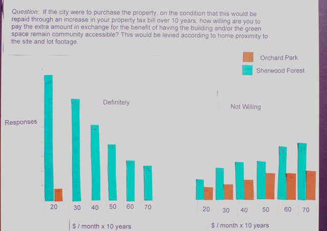 At the 2012 Annual General Meeting (AGM), we asked people to fill out a survey to help direct the work of the group looking into options for the Sherwood Forest school site. The results from the survey are shown below.