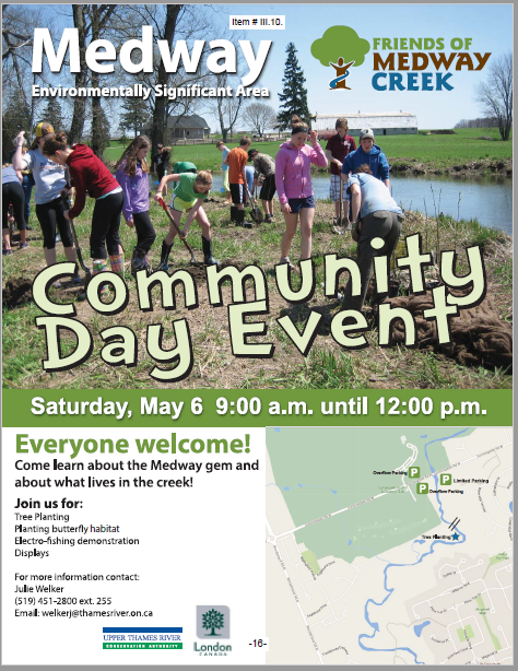 This year’s BBQ and AGM are on Thursday, May 25, 6:00 pm at Orchard Park Public School. Encourage your neighbours to attend, especially anyone who has moved into the area since last May. In addition to an update on the Medway, there will be a presentation from the London Police about avoiding break ins and fraud, and an update on the tender for the sale of part of the lands of the former Sherwood Forest School site.