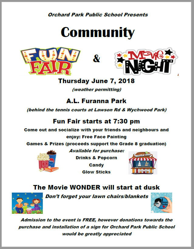 Orchard Park Public School Fun Fair and Movie Night – June 7, 7:30 pm