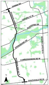 Some of you have received a notice in the mail of the first of at least two public sessions on the Wonderland Road widening the city has planned. If approved, this would take a number of years and be done in stages from Southdale Road up to Sarnia Road, making Wonderland six lanes along with bike lanes. Also being considered are one or two more new bridges next to the existing Guy Lombardo Bridge. This is to accommodate bike and pedestrian traffic as the existing bridge is not wide enough for both six lanes of cars and pedestrians and bikes. The open houses are being held on January 30 from 4 to 7 pm at the Civic Garden Complex, 625 Springbank Drive and on January 31 from 4 to 7 pm at the Bostwick Community Centre, 501 Southdale Road West.