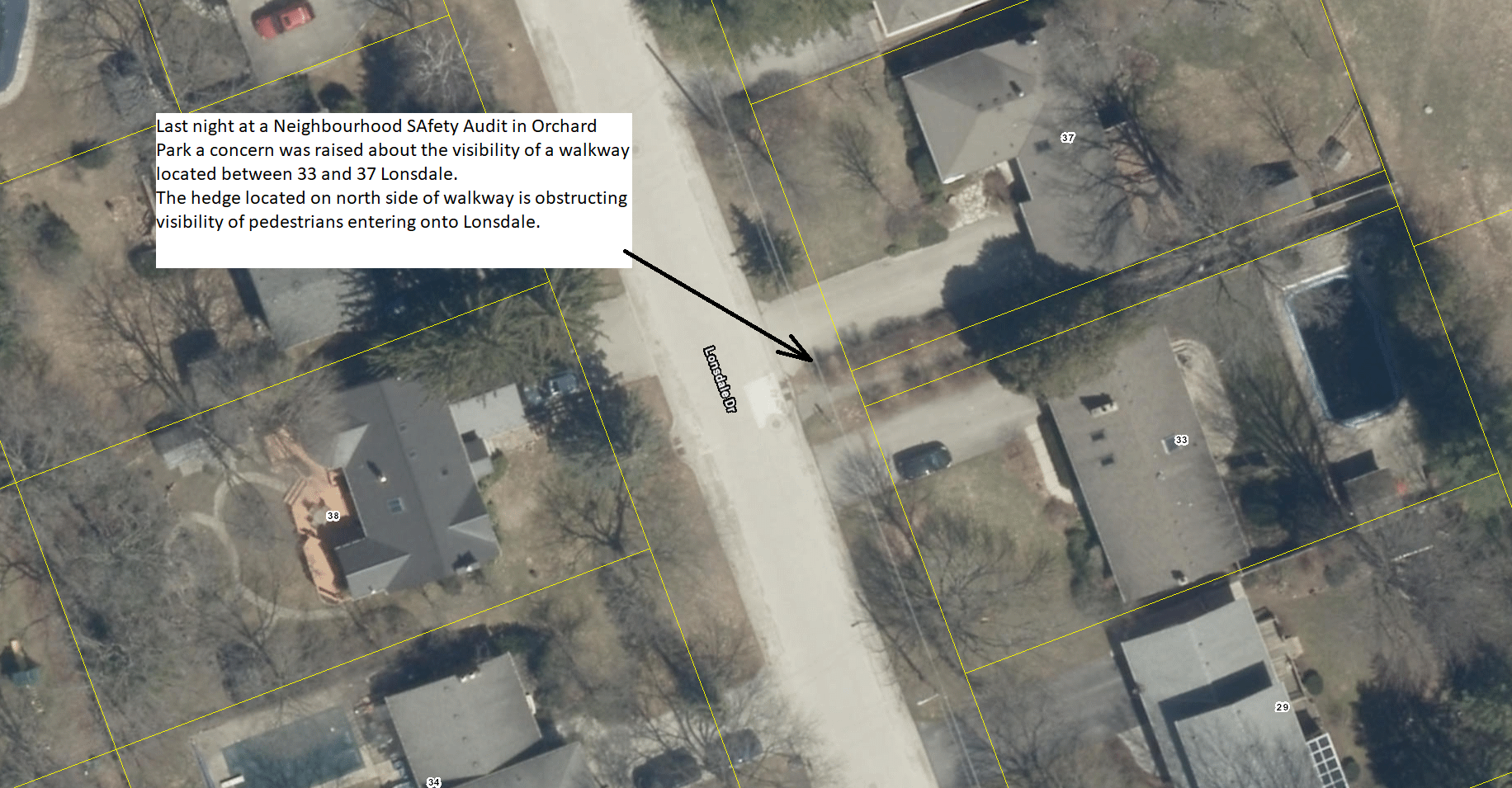 5. Concerns were raised about the sight lines for the Sarnia and Leyton intersection. This will be reviewed by City staff.