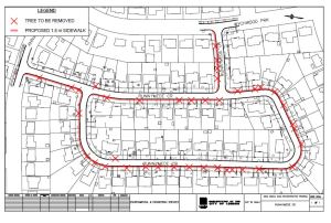 Runnymede Plan Runnymede Crescent and Abbey Rise will be reconstructed this upcoming summer due to their current road condition. As per Council direction the City will be installing new sidewalks in the boulevard along the entire length of these roadways. To minimize tree impacts the sidewalk will be installed on one side only. While not ideal the City will also be installing the sidewalk immediately behind the curb to further minimize tree impacts, however this still requires a large number of trees to be removed.