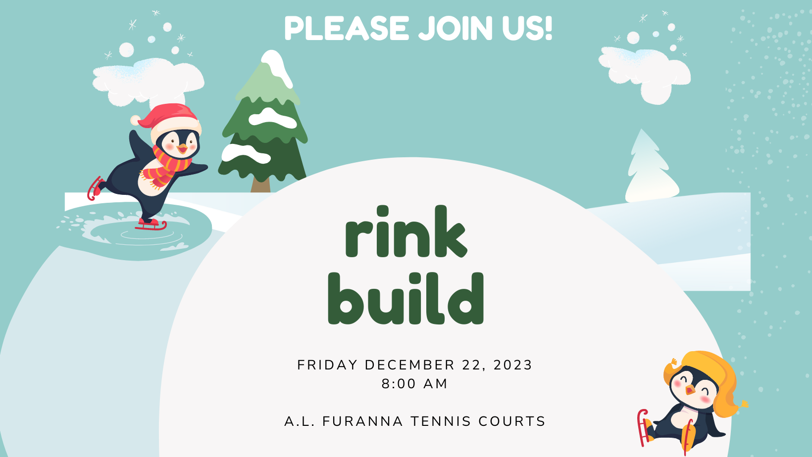 Rink Build – Friday, Dec 22 Please join us for the Rink Raising – Friday Dec 22, 8:00 am, at the A.L. Furanna tennis courts. Bring a drill if you have one. Come even if you don’t! Share this: Click to share on Facebook (Opens in new window) Facebook Click to email a link to a friend (Opens in new window) Email Like Loading... Related