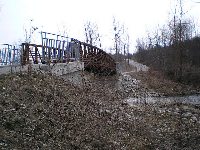 It has come to the attention of the Executive of the Neighbourhood Association that there is a draft proposal to once again bridge the Medway Creek with a major structure for pedestrians and bikes. Because of Medway Creek’s flood characteristics, the bridge would be like the ones north of Fanshawe Park Road (see below), and not the recently renewed little bridge below the staircase which bridges a tributary.