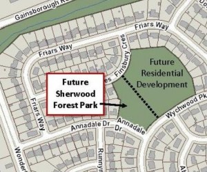 The City of London has had to defer construction of Sherwood Forest Park (and others across the city) from fall 2019 to spring 2020. The project has been delayed to ensure a high quality finished product, to provide a little more time to better coordinate with the adjacent developer and to ensure that the park remains useable over the winter months (this means the dirt piles will be leveled). The City has apologized for the delay, but hopes the neighbourhood understands and appreciates the key reasons for the delay. The City has indicated that this park project will be their highest priority to complete in the spring, 2020, once conditions are suitable.
